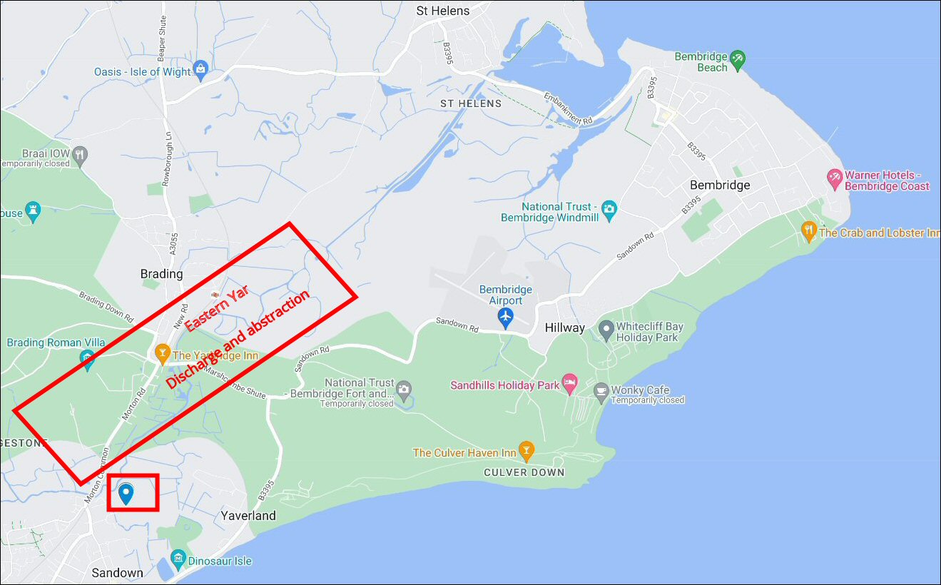 The proposed Sandown plant would discharge recycled effluent into the Eastern Yar, probably some distance upstream from the plant, for dilution with fresh river water and re-abstraction further downstream.