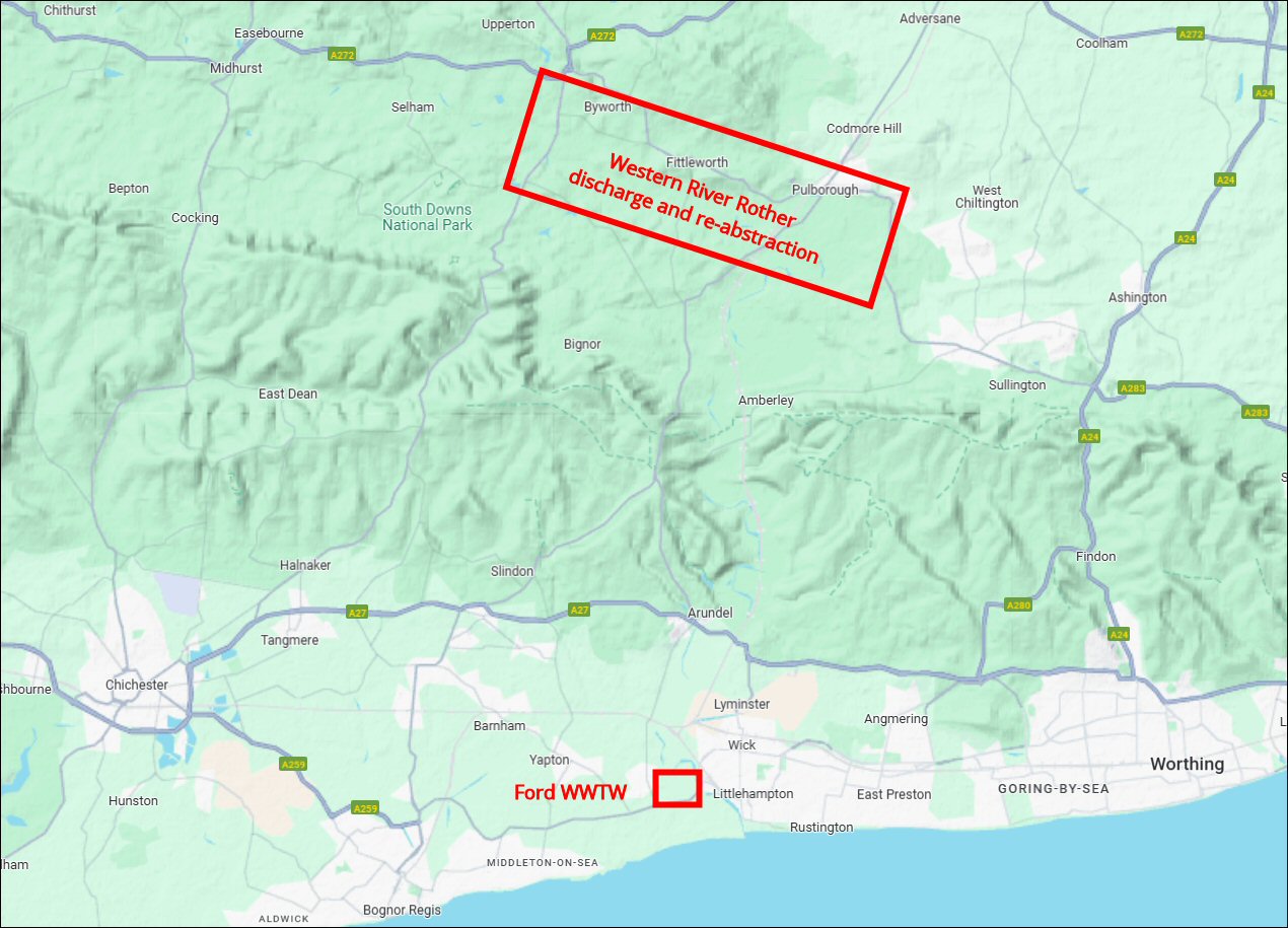 The company propose to construct a pipeline across the South Downs National Park to release the recycled effluent into the western River Rother for dilution with fresh river water to provide the necessary environmental buffer before the re-abstraction of an equivalent quantity of water, further downstream near Pulborough, for final water treatment at its Hardham Water Supply Works.