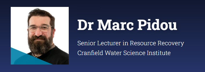 Marc is an expert in Water Science & Engineering. He held a Research Fellow position in the Advanced Water Management Centre at the University of Queensland (Australia) in 2010, where he contributed to projects studying membrane technologies for water recycling. Dr Pidou then returned to Cranfield Water Science Institute in July 2013 and was promoted to Lecturer in Resource Recovery in 2015 and then Senior Lecturer in Resource Recovery in 2020.
