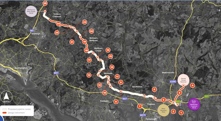 Developed a route for the connection point to the Portsmouth Water pipeline.